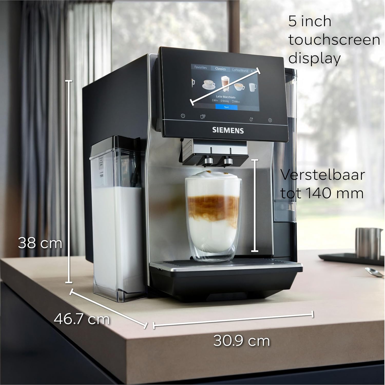 De Siemens EQ700 is uitgerust met een geïntegreerde melkcontainer en een milk carton adapter. Dit betekent dat je melk direct uit de verpakking kunt gebruiken, zonder dat je een aparte melkkan nodig hebt. Dit systeem maakt het makkelijk om je koffie naar wens aan te passen zonder extra rompslomp.